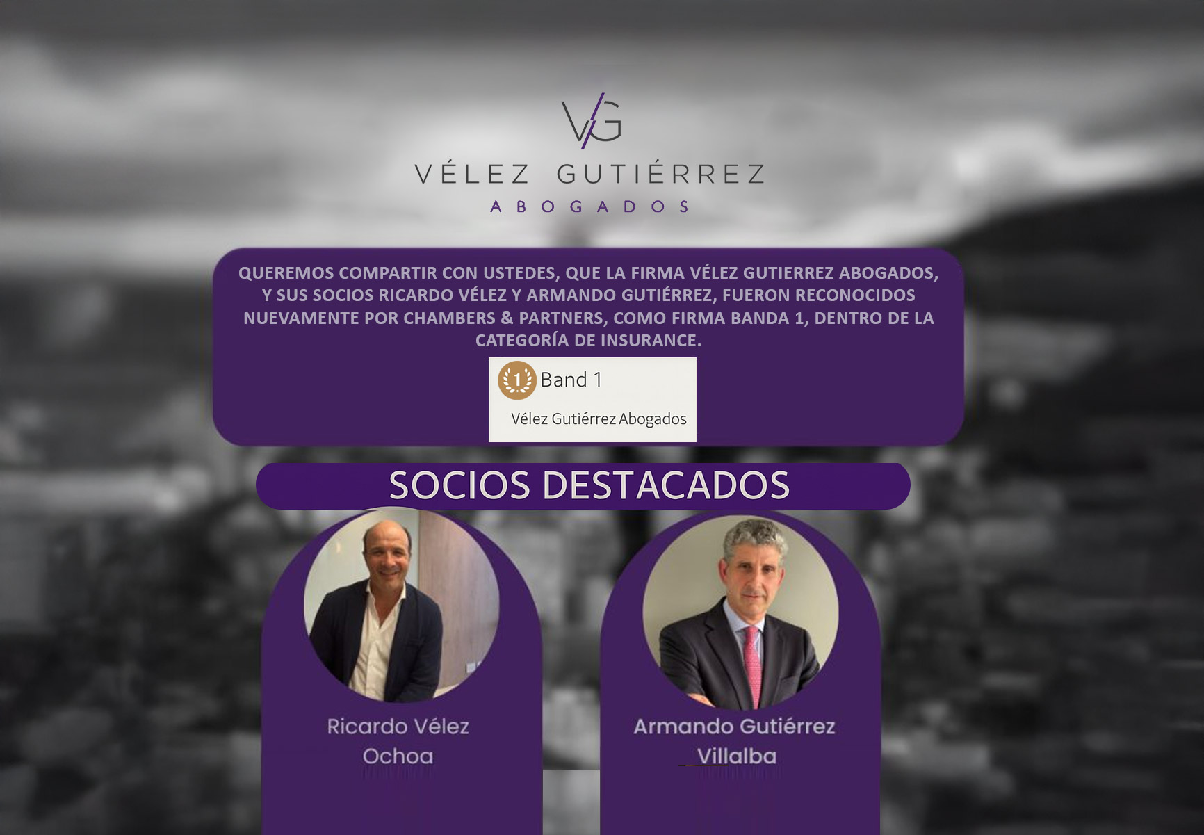 En Vélez Gutiérrez Abogados celebramos con orgullo un nuevo logro: Chambers and Partners, uno de los directorios jurídicos más prestigiosos a nivel internacional, nos ha distinguido una vez más como Banda 1 en la categoría de “Insurance”.